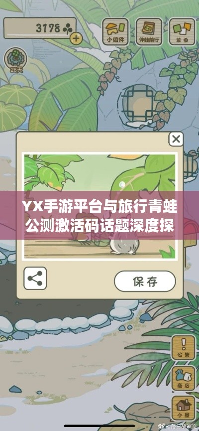 随着互联网的普及和科技的飞速发展,手游成为人们休闲娱乐的重要方式之一,YX手游平台作为新兴的游戏平台,近期推出的旅行青蛙公测激活码更是引发了广泛关注,本文将从正反两个方面对YX手游平台及旅行青蛙公测激活码进行阐述,并给出平衡的观点。