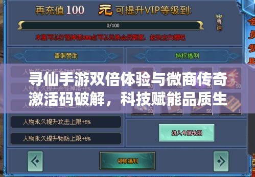 寻仙手游双倍体验与微商传奇激活码破解,科技赋能品质生活双重盛宴体验