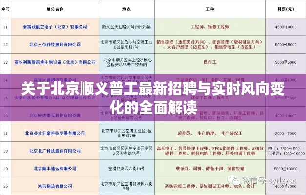 关于北京顺义普工最新招聘与实时风向变化的全面解读