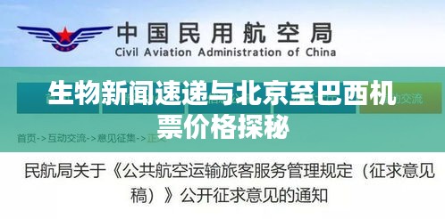 身为一名对生物科技领域充满热情的博客站长,我时刻关注着全球生物科技领域的最新动态,一则关于生物的实时新闻引发了广泛关注,北京到巴西的机票价格也成为热议的话题,本文将围绕这两个关键词展开,分享我对生物科技新闻的理解以及机票价格的观察。