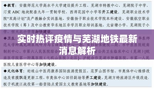 在当今社会,疫情与城市建设始终是公众关注的焦点,实时热评疫情与芜湖地铁最新消息,便是这两者结合的产物,疫情背景下,城市公共交通系统的建设与发展尤为引人关注,而芜湖地铁的最新消息更是吸引了广大市民和网友的眼球,我们需要对这两者进行清晰的界定和背景概述。