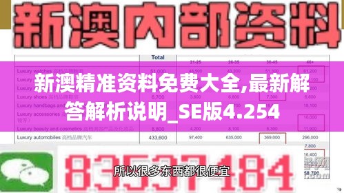 “《新澳精准资料免费大全:最新解答解析说明_SE版4.254》”中的“SE版”可能指的是共享版本,意味着该资源库可以被大众共享和使用;而“4.254”则可能是资料库的版本号,表明这是一个持续更新、定期维护的平台。