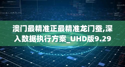 在现代数据科学世界中,信息处理和数据分析已成为推动行业发展的关键力量,在此背景下,"澳门最精准正最精准龙门蚕"这一理念显得尤为重要,本文将详细解读这一理念,并结合深入数据执行方案UHD版9.294,为数据分析师和行业专家提供清晰、精准的指导。