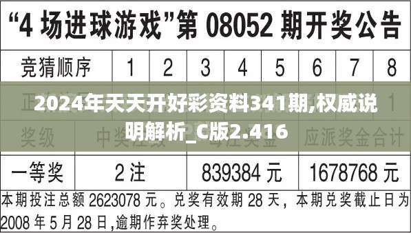 随着彩票行业的蓬勃发展,彩票游戏已成为人们日常生活中的重要娱乐方式之一。"2024年天天开好彩资料341期"作为众多彩民关注的焦点,不仅为彩民们提供了一个参与多彩抽奖活动的平台,更通过"资料341期"的形式,集结了丰富的彩票资讯和各类彩票游戏,让我们一同深入探索这个备受瞩目的彩票资讯平台,及其在2024年的独特魅力和特色。