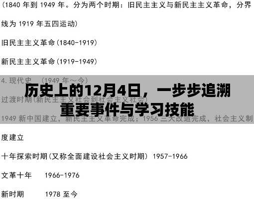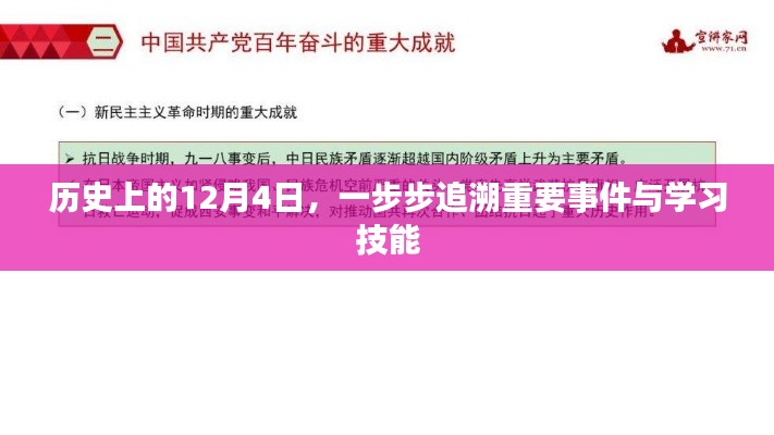 本文将带领大家一同回顾历史上的重要时刻,特别是每年的十二月四号所发生的事件,我们将介绍如何通过在线资源学习新技能或完成任务,适合初学者和进阶用户阅读,通过本文,您将能够深入了解历史事件的背景,并学会如何利用现代网络工具进行自我提升,请跟随我们的脚步,一同走进历史的殿堂。