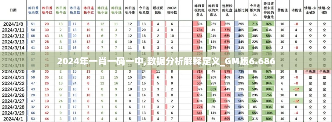 在“2024年一肖一码一中”的概念中,数据分析扮演着核心角色,通过对大量数据的处理和分析,挖掘有价值的信息、模式和趋势,以支持决策制定,而“解释”则意味着对分析结果进行更深层次的认知及语言描述,使结果更易于理解和运用,在这个过程中,GM版6.686将发挥至关重要的作用。