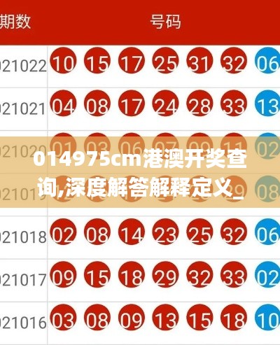 深度解答解释旨在帮助用户理解复杂或晦涩的信息。"014975cm港澳开奖查询"的相关内容,将从开奖流程、查询渠道、开奖结果的重要性等方面进行详细阐述。