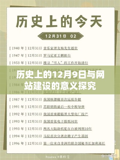 随着互联网的普及与发展,网站建设成为了现代社会不可或缺的一部分,而回顾历史长河中的某个时间点——即每年的12月9日,对于网站建设的意义也颇具深意,本文将围绕这一日期展开论述,探讨其在网站建设历程中的重要性及其背后的意义。