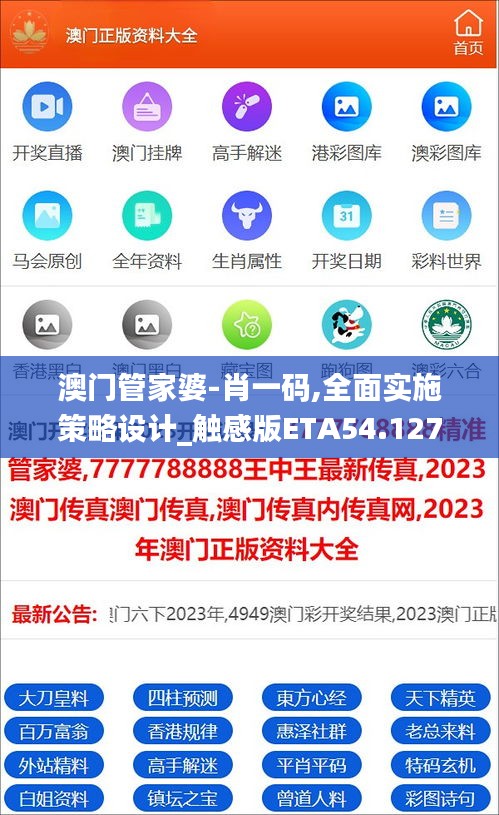 在现代信息时代,数据与技术是成就变革的基石。而在澳门这座繁华的都市中,一个名为“肖一码”的革命,正悄然展开其不可忽视的影响力。“澳门管家婆-肖一码”,一个全面实施策略设计的系统,以其独特的触感版ETA54.127技术引领着区域管理的潮流。