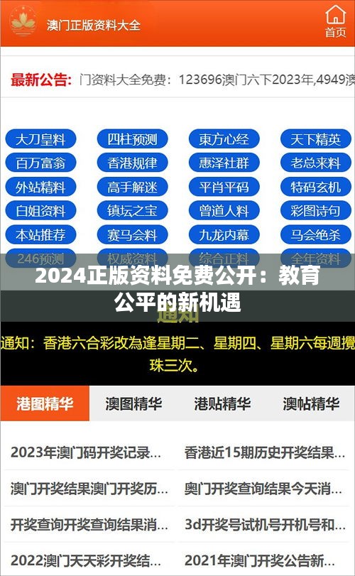 2024年,随着教育公平观念在澳门政策制定中占据越来越重要的位置,正版资料免费公开成为实现这一关键目标的重要步骤,在知识经济时代,知识传播和教育公平是社会的基石,而知识产权的保护同样不容忽视,正版知识的免费公开不仅有助于促进知识的广泛传播,更能保障知识分子和创作者的合法利益,实现了知识共享与知识产权保护的平衡。