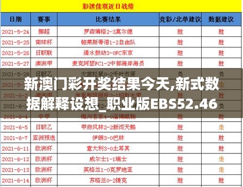 今天,我们谈论的是一个特殊的话题,即新澳门彩的开奖结果和它所包含的新式数据解释设想,特别是关注职业版EBS52.468这种特定数据的分析和应用。我们将深入探讨这一领域的最新发展和影响,以及它们与彩票开奖结果之间的紧密联系。