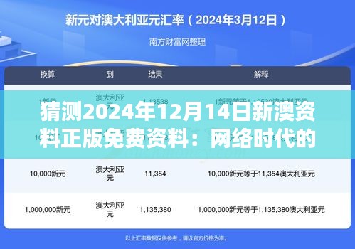《猜测2024年12月14日新澳资料正版免费资料:网络时代的版权问题》所探讨的不仅是澳门面临的版权挑战,也是全球范围内共同关注的问题,随着科技的不断发展,澳门必须不断调整和优化其版权法律框架,以适应网络时代的需求,在保护版权的同时,也要推动知识共享和创新,以实现社会的长期繁荣和发展。