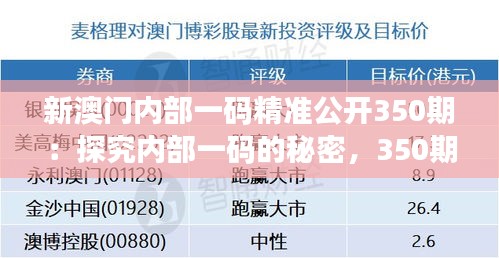 "新澳门内部一码精准公开350期:探究内部一码的秘密,350期的精准启示"不仅是对一码技术的深入探索,也是对澳门政策未来发展的前瞻。我们希望通过这篇文章,让读者感受到一码在政策文件中的重要作用,并激发他们对澳门政策创新的热情。