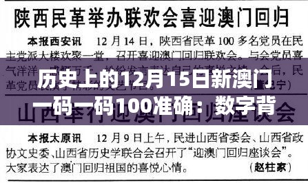 历史上的12月15日新澳门一码一码100准确:数字背后的故事,澳门历史的精彩篇章