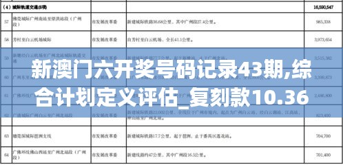 在澳门特别行政区,博彩业作为重要的经济支柱之一,对于促进本地经济发展和提供就业机会具有关键作用,澳门博彩监察协调局发布了最新的开奖号码记录,其中的“新澳门六”引起了广泛关注,编号为43期的政策文件中详细记录了开奖号码的统计数据和相关评估,而综合计划评估标准中的复刻款10.362成为了关注的焦点,本文旨在深入分析这一政策文件,探讨其对澳门博彩业的影响及未来发展的指导意义。